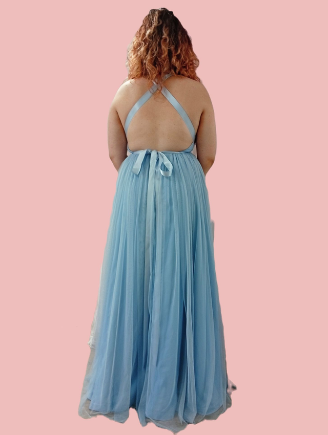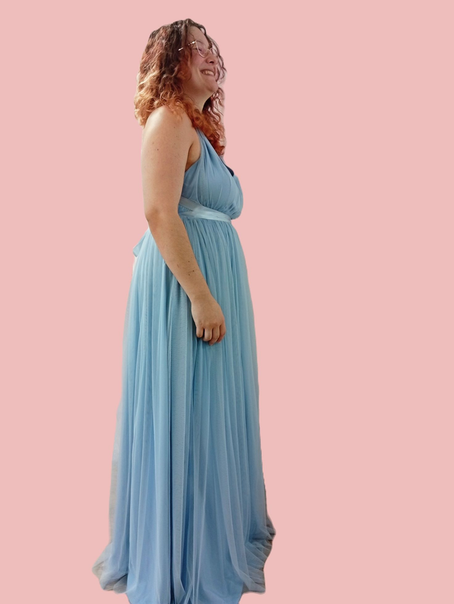 Ajoutez une touche d’élégance à votre occasion spéciale avec cette superbe robe de cérémonie Asos. Cette magnifique robe dos nu en tulle bleu est dotée d’un ruban qui se noue autour du cou et d’une ceinture à la taille, créant une silhouette flatteuse. La robe de cérémonie de taille 42 est en parfait état, prête à vous faire paraître et vous sentir fabuleuse lors de tout événement formel. Qu’il s’agisse d’un mariage, d’un bal de fin d’année ou d’un gala de charité, cette robe de cérémonie ne manquera pas de faire tourner les têtes et de vous donner l’impression d’être une star. Ne manquez pas cette occasion d’ajouter une touche de glamour à votre garde-robe avec cette pièce qui se démarque.