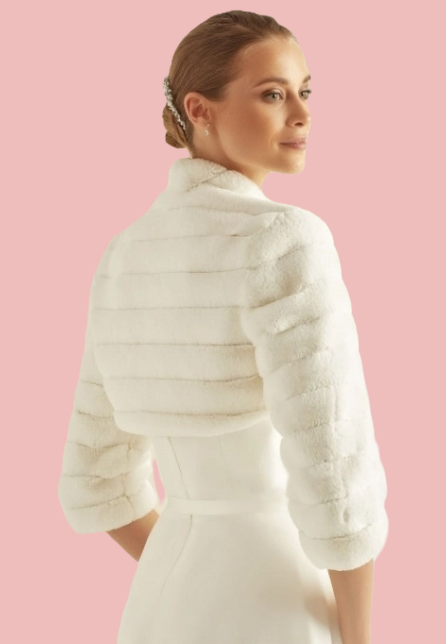 Ajoutez une touche d’élégance et de sophistication à votre ensemble de mariée avec notre luxueux Boléro en fausse fourrure. Ce boléro est savamment conçu pour imiter l’apparence et la sensation du vrai vison, offrant à la fois chaleur et glamour lors de votre journée spéciale. La couleur ivoire complète parfaitement une large gamme de robes de mariée, et la fausse fourrure ajoute une touche intemporelle et classique à tout look de mariée. Disponible en plusieurs tailles, ce boléro peut être commandé en magasin pour assurer un ajustement parfait pour le jour de votre mariage. Rehaussez votre style de mariée avec ce superbe boléro en fausse fourrure qui respire le luxe et le charme.
