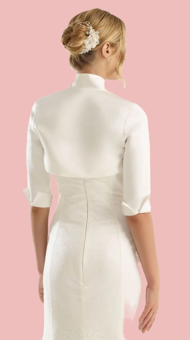 Préparez-vous à rehausser votre look de mariée avec nos superbes manches longues en satin Boléro. Ce boléro ivoire est fabriqué à partir de satin de haute qualité et présente des manches longues, parfaites pour ajouter une touche élégante à votre robe de mariée. Disponible en plusieurs tailles, ce boléro peut être commandé en magasin pour assurer un ajustement parfait pour votre journée spéciale. Que vous recherchiez un peu plus de couverture ou que vous souhaitiez simplement ajouter une touche de glamour, ce boléro est le choix parfait pour toute future mariée. Ne manquez pas l’occasion de compléter votre ensemble du jour du mariage avec cette magnifique pièce de notre boutique mariage.