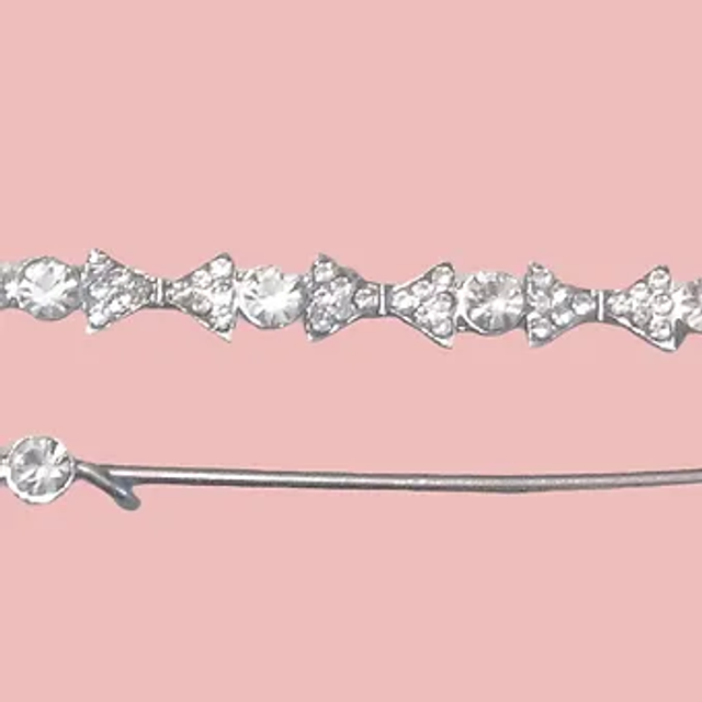Cette épingle de couleur argentée est ornée de strass scintillants, ajoutant une touche d’élégance et de glamour à votre tenue de mariage. Avec ses 7 cm de longueur, elle est parfaitement dimensionnée pour fixer votre traîne tout en apportant une touche d’éclat lors de votre entrée. Que vous portiez une robe de bal traditionnelle ou une robe fourreau épurée, cette Épingle attache traîne est la touche finale idéale pour votre look du grand jour. Dites "oui" à un soupçon de brillance pour votre journée spéciale avec cet accessoire somptueux.