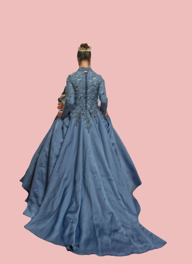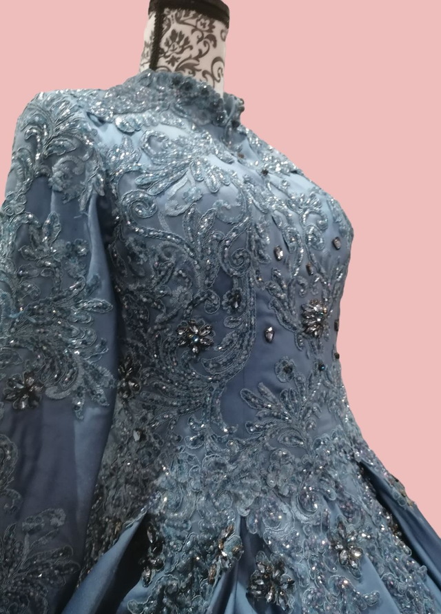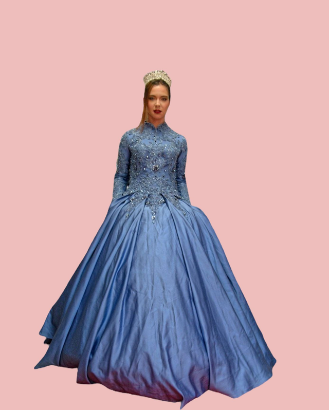 Découvrez cette superbe robe princesse bleue en provenance d'Istanbul, disponible sur notre boutique en ligne. Fabriquée en satin bleu, elle présente un col montant et des manches à boutons pour une touche élégante. Le laçage au dos ajoute une touche de sensualité à cette magnifique robe, superbement ornée de cristaux de Swarovski pour un effet étincelant. C'est un vrai bijou de la mode d'occasion en bon état, vendue sans jupon. Cette robe est parfaite pour une occasion spéciale ou un événement formel. Offrez-vous l'élégance et le raffinement avec cette robe princesse Istanbul.