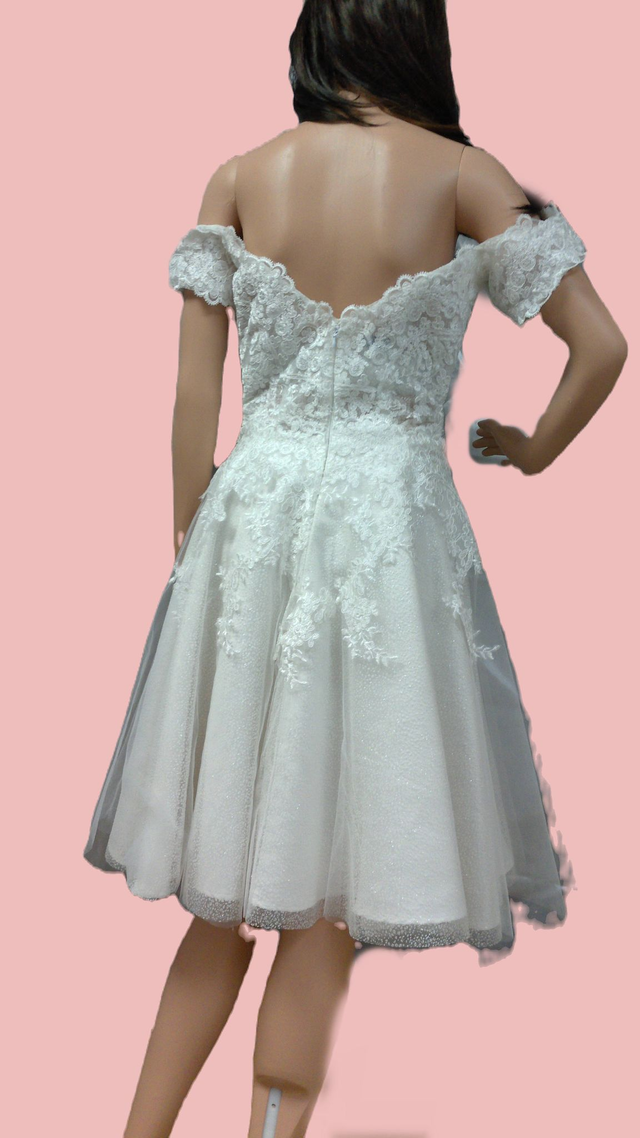 La Mandy Robe de mariée princesse courte est un joli modèle de robe qui saura mettre en valeur votre silhouette. Avec ses épaules tombantes et son décolleté en forme de cœur, elle apportera une touche romantique à votre tenue. La forme princesse allongera votre silhouette, tandis que le soutien-gorge intégré assurera maintien et confort tout au long de la journée. Sa fermeture éclair dans le dos permettra un enfilage facile et rapide. Vous avez la possibilité de composer cette robe selon vos envies sur commande, pour un résultat unique et personnalisé. Fabriqué en tissu de haute qualité, cette robe vous garantit une tenue élégante et confortable pour le plus beau jour de votre vie.