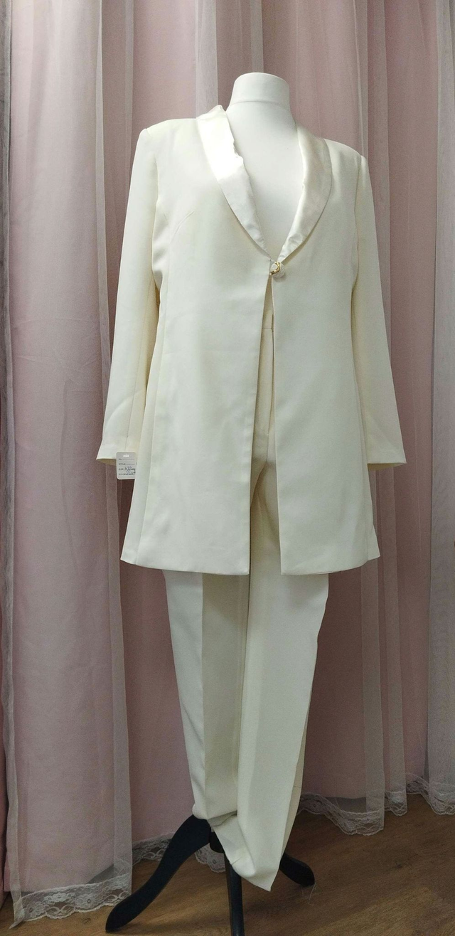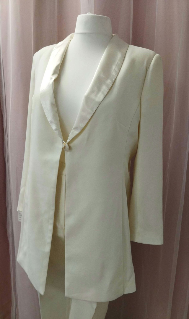 Élégant et sophistiqué, le Mira smoking femme est l’ensemble parfait pour toute occasion spéciale. Fabriqué à partir d’un tissu Burlington et satiné de haute qualité, cet ensemble comprend une veste trois-quarts avec une fermeture à boutons ivoire et doré et des boutons coordonnés sur les manches. Le pantalon à pinces classique est doté de poches pour plus de commodité et de confort. Que vous assistiez à un mariage ou à un événement formel, ce costume sur mesure est un choix intemporel qui ne manquera pas de faire tourner les têtes. Rehaussez votre style avec le Mira smoking femme et faites sensation lors de votre prochain événement spécial.