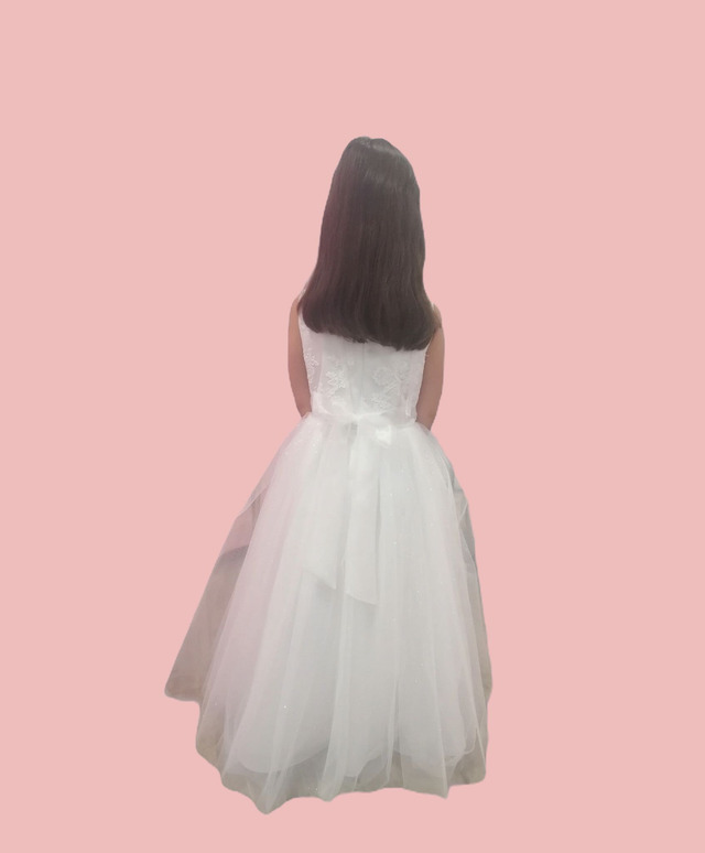 Découvrez notre magnifique robe fillette "Paillette" qui brille de milles feux sur notre boutique en ligne. Cette robe est parfaite pour les occasions spéciales et faire briller votre princesse. Le haut sans manches est orné d'appliques de dentelles sur tulle, tandis que le bas est en tulle pailleté, complété par une ceinture en organza. Disponible en taille 12 ans et de couleur blanche, cette robe apportera une touche d'élégance et de féérie à votre fille.
