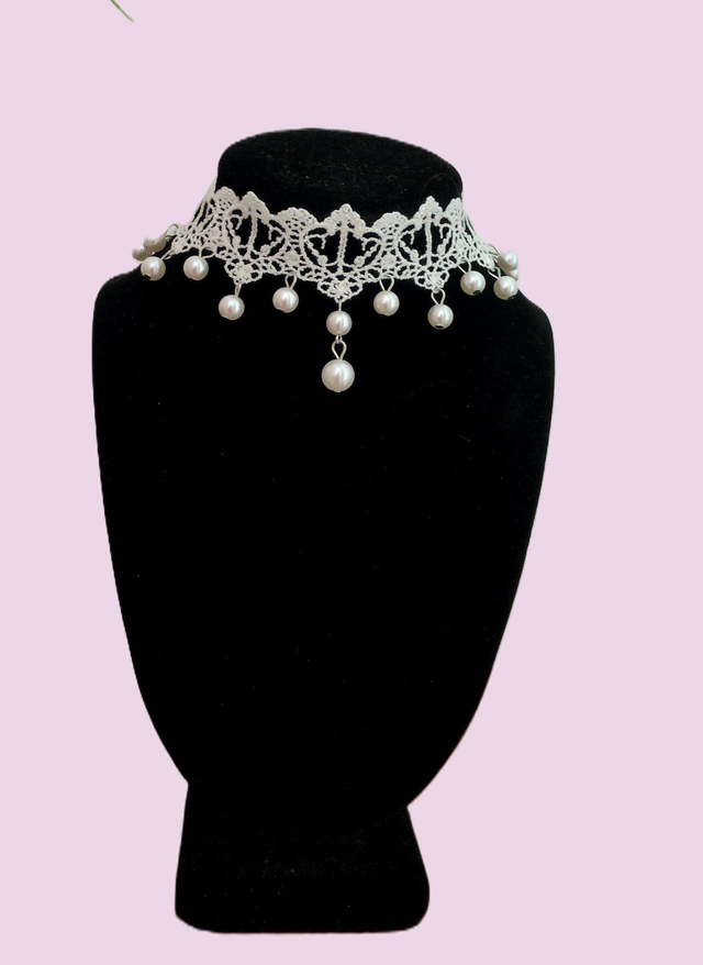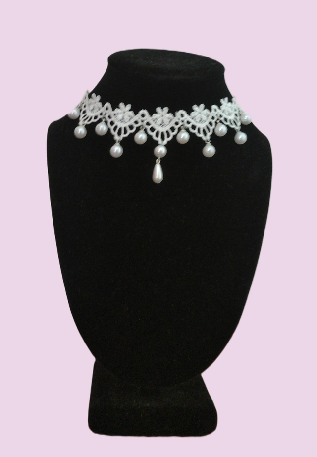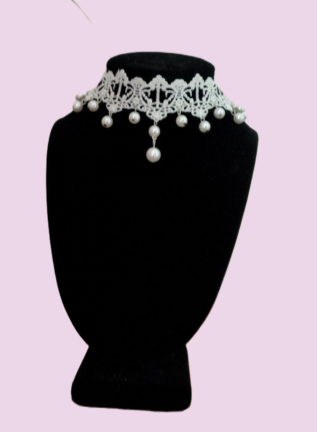 Jolis ras de cou en dentelle polyester agrémentés de perles nacrés, bijoux fantaisie, réglable grâce au fermoir ajustable. Il mettra en valeur votre port de tête avec un petit côté gothique charmant.